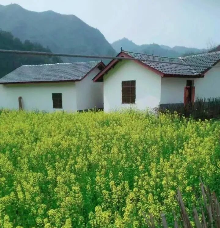 村莊坐落盆底,四周群山環抱,土地平坦而肥沃。牛兒在靜靜地吃草,小雞在悠閑地漫步,小鴨在歡快地游泳,村民在田間耕作,老人坐在家門口抽著煙袋,小孩子在院落里嬉戲,老水車在自由的旋轉。一座座古樸的民居靜靜地散落在青山綠水間,相互映襯顯得格外安詳。青山排撻出生機勃勃的陣勢,一簇簇紫藤垂下滿樹繁華,一壟壟油菜籽已經豐腴飽滿,刺玫花的清香和著青草味迎面撲來,沁人心脾,我醉了……