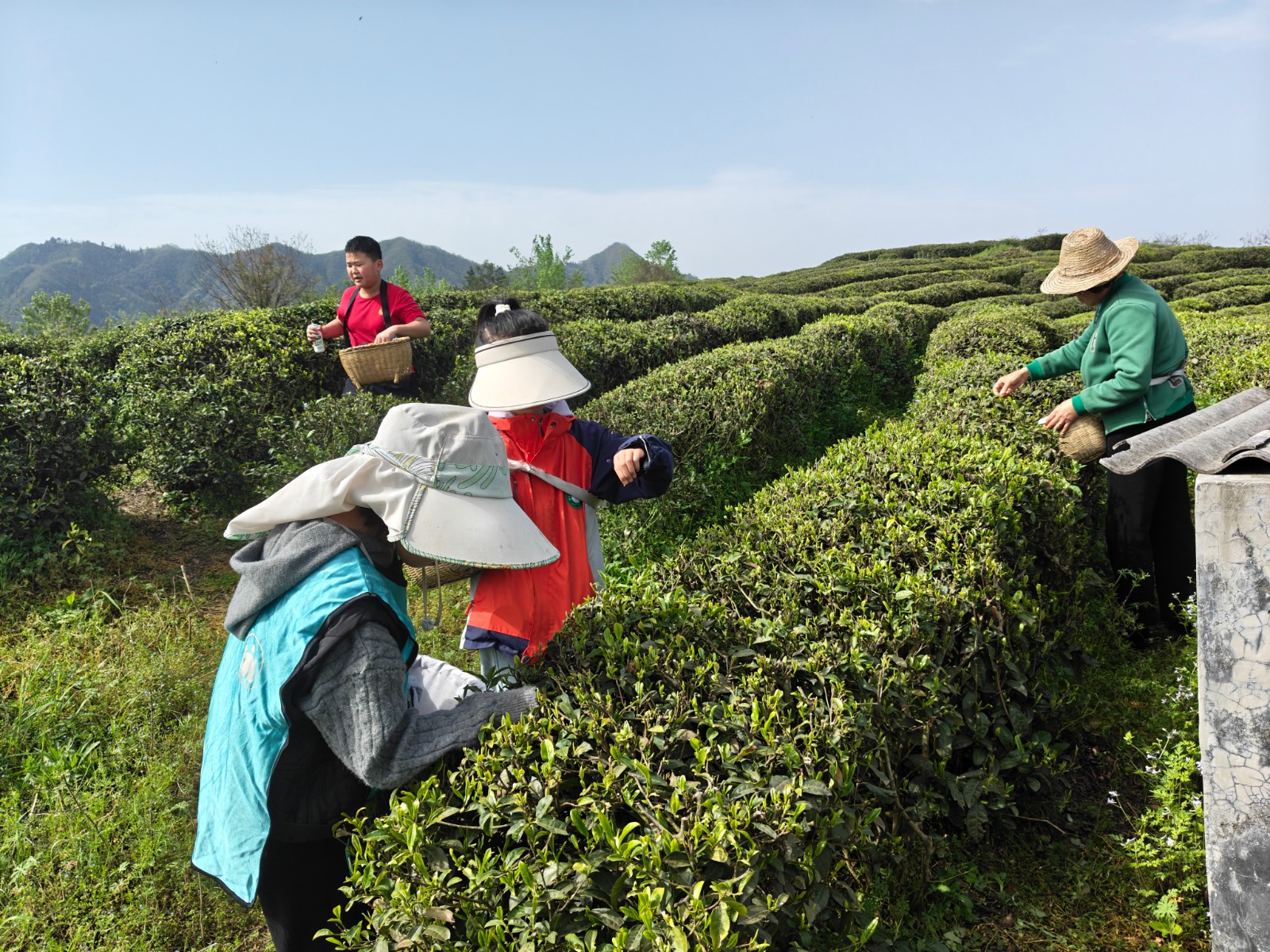 活動現(xiàn)場,童伴媽媽向孩子們科普基礎(chǔ)茶文化,講解采茶安全規(guī)范及志愿服務(wù)要求,引導(dǎo)大家文明采摘、愛護(hù)茶樹。茶園工作人員現(xiàn)場示范采茶技巧后,親子兩兩結(jié)對,組成志愿采茶小隊(duì),穿梭于茶壟間,認(rèn)真采摘鮮嫩茶芽。孩子們興致勃勃地體驗(yàn)勞作樂趣,家長在一旁悉心陪伴引導(dǎo),現(xiàn)場氛圍溫馨而歡樂。?