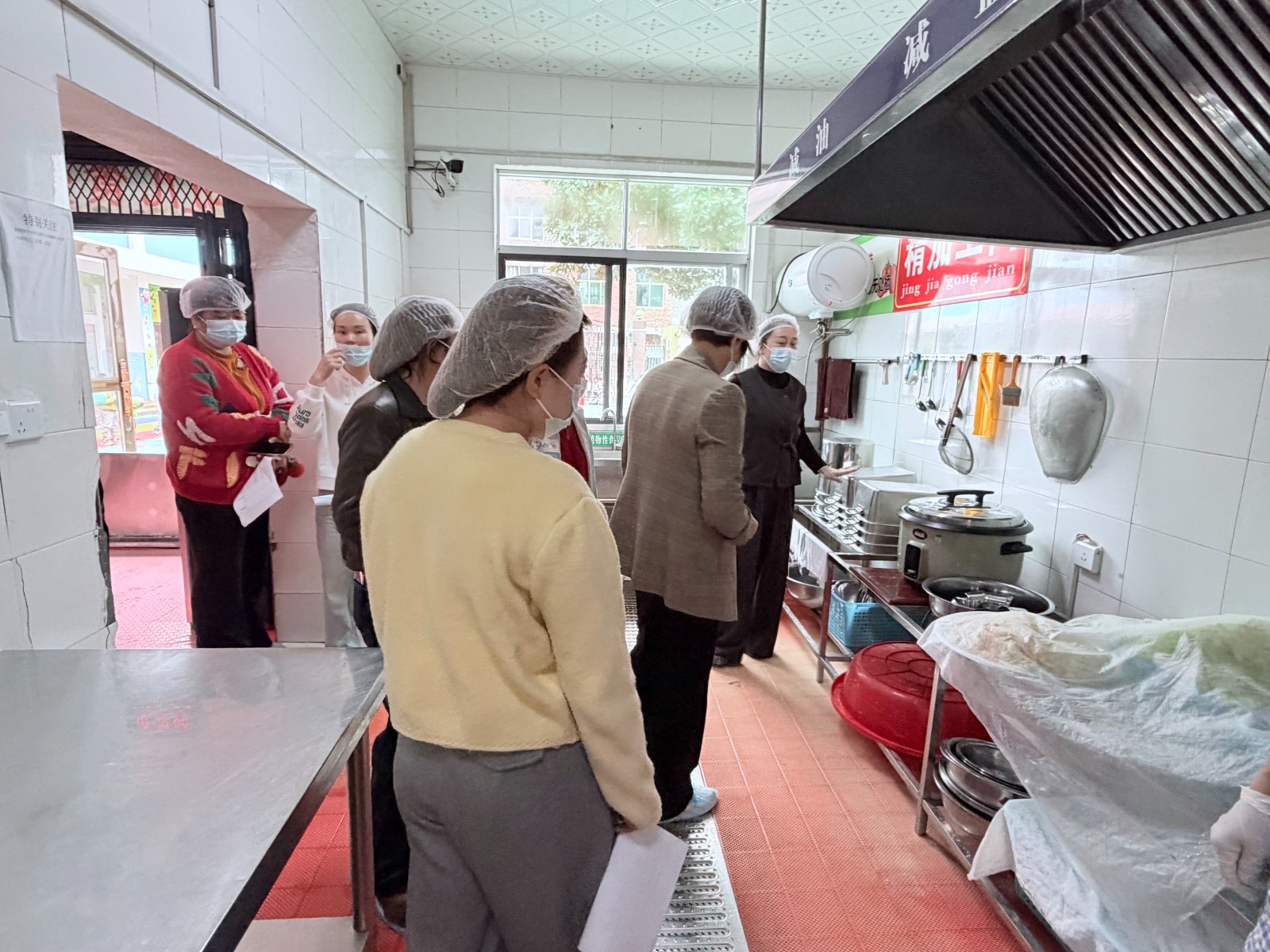 今日竹山網(wǎng)消息 4月15日上午,為加強膳食管理、搭建家園溝通橋梁,筑牢幼兒飲食安全防線,我園開展膳食委員會開放日活動。膳食委員會成員實地參觀食堂各功能區(qū)域,詳細了解食材采購、加工、留樣等全流程規(guī)范,直觀感受食堂衛(wèi)生管理標準。