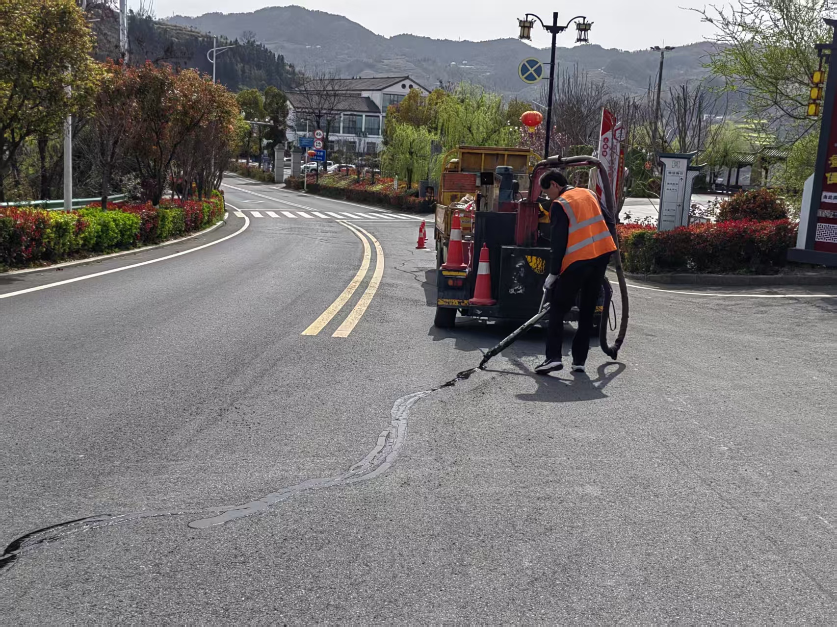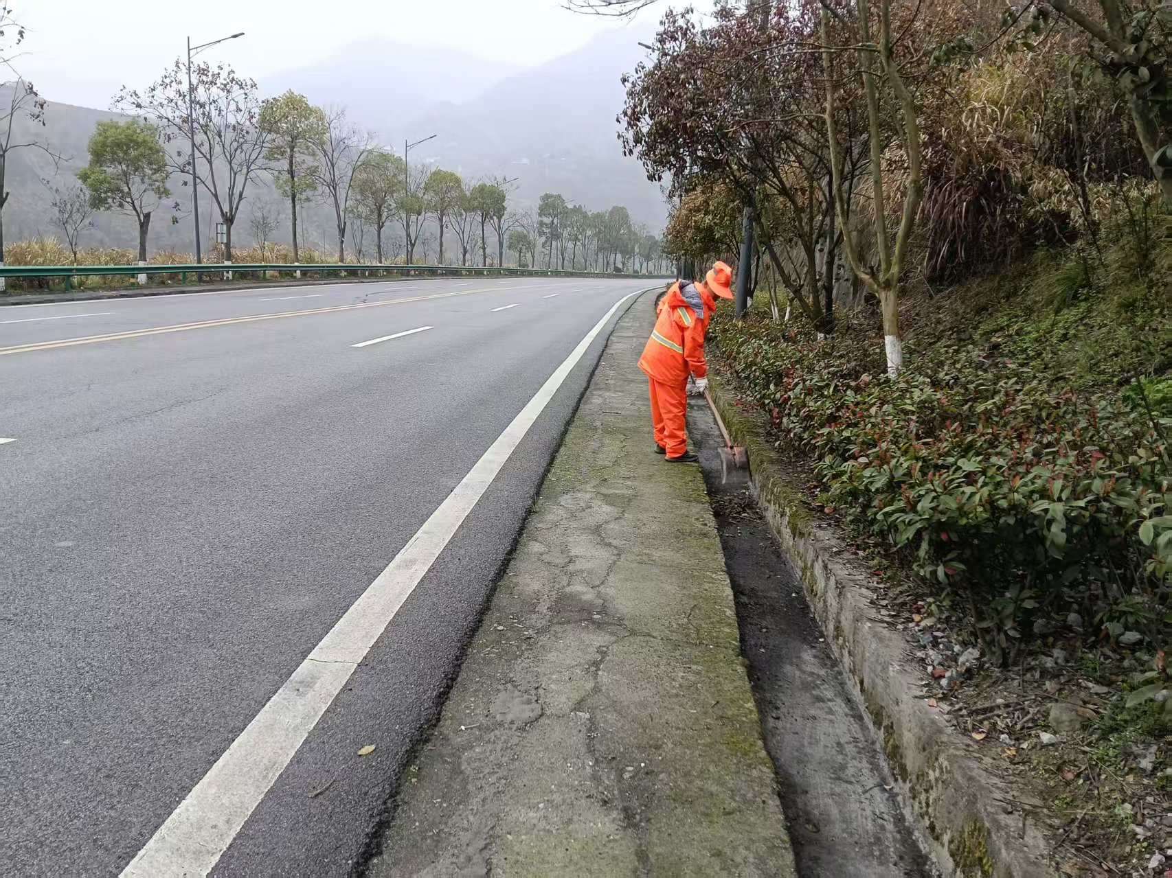 一是日常養(yǎng)護常態(tài)化。落實“一人一段、責(zé)任到人”機制,開展路面清掃、邊溝疏通、路肩除草、行道樹修剪等作業(yè),更換破損標(biāo)志標(biāo)牌。累計完成路面清潔2000公里,疏通邊溝400公里、涵洞500余座,修剪行道樹450公里,清掃停車區(qū)、服務(wù)區(qū)600余次。二是病害處置精細化。針對冬季雨雪冰凍造成的路面裂縫、坑槽,提前勘測并建立臺賬,分類制定處置方案。已完成坑槽修補1000平方米,路面灌縫7萬延米,提升路面平整度。三是地災(zāi)防控前置化。提前應(yīng)對夏汛,自籌資金利用春季氣溫,對317省道K39+700處因秋汛沖毀的近200米路基進行治理,采用片石混凝土擋墻、重裝鋼護欄,目前已恢復(fù)暢通。四是綠化補植精準(zhǔn)化。優(yōu)化提升S281、G242、G346等路段100公里綠化景觀,補栽紅葉石楠、櫻花等樹種7000余株,打造“一步一景”生態(tài)公路。