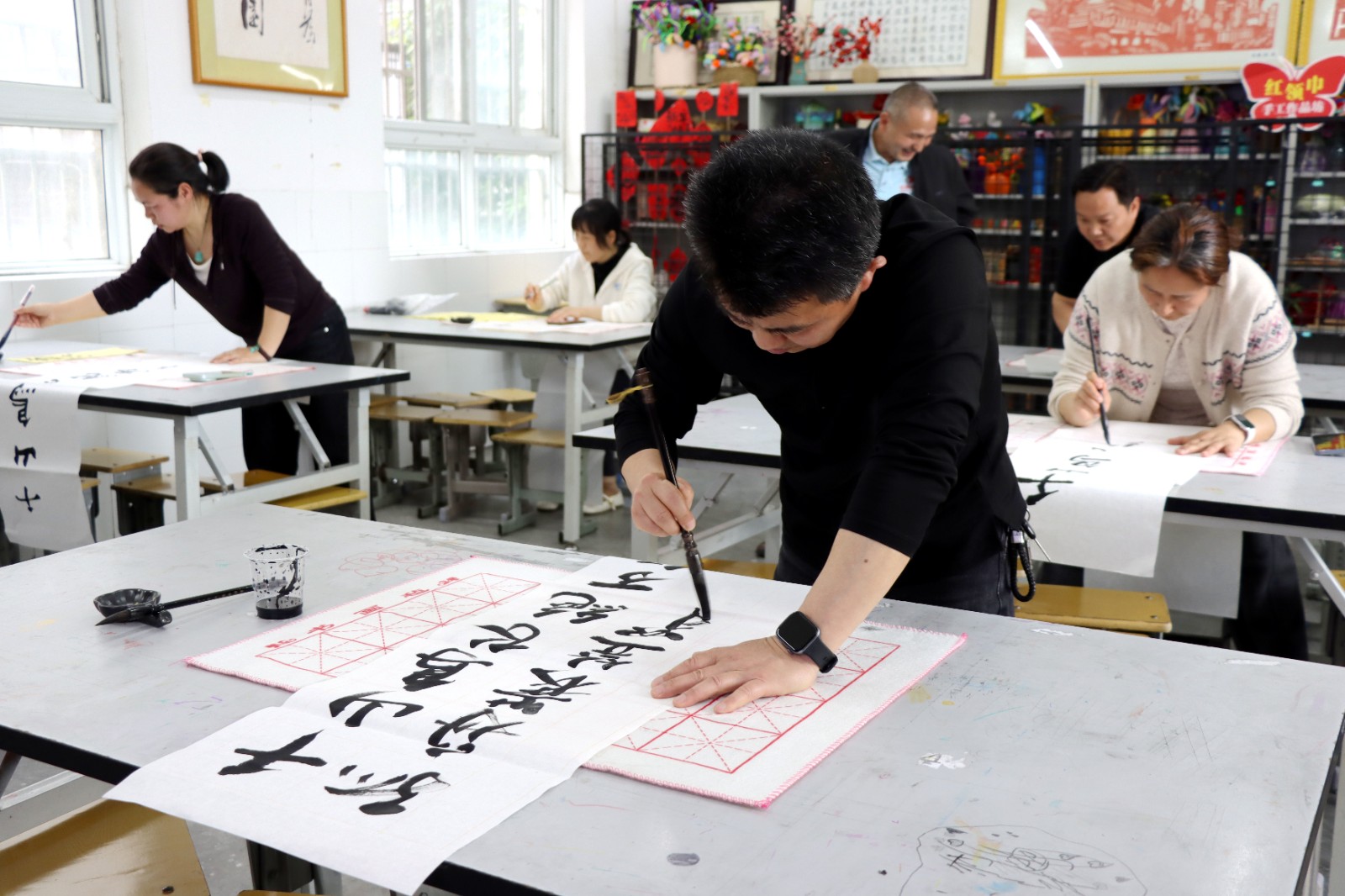 今日竹山網消息 4月17日上午,張振武小學美術室十余位老師伏案懸腕,宣紙上的毛筆字一筆一畫剛柔并濟。——這是該校2026年教師基本功大賽暨毛筆字比賽的現場。