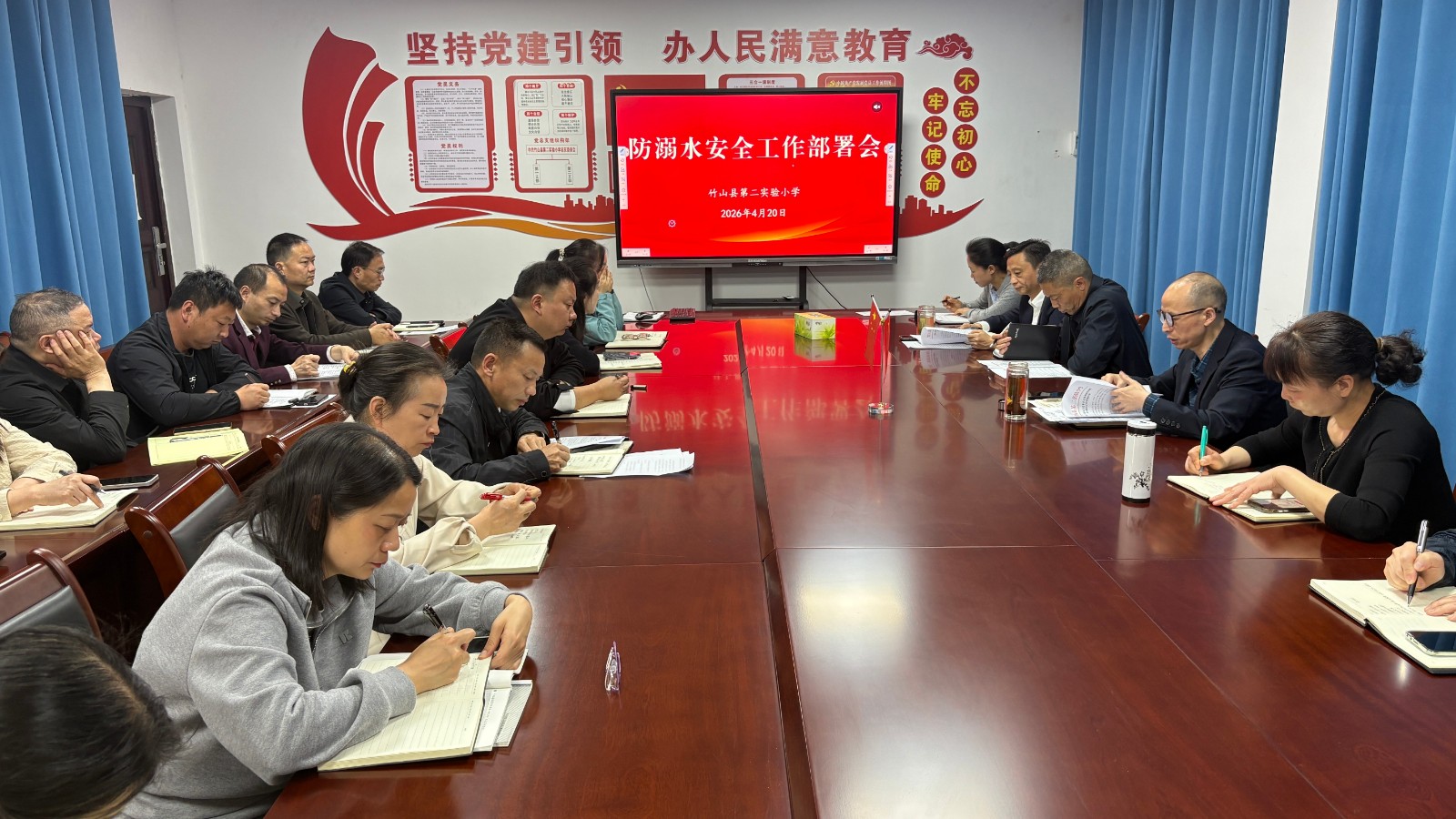 今日竹山網消息 4月20日,縣第二實驗小學召開安全教育專題會議,聚焦校園防溺水、防欺凌等重點工作,開展再鞏固、再教育。