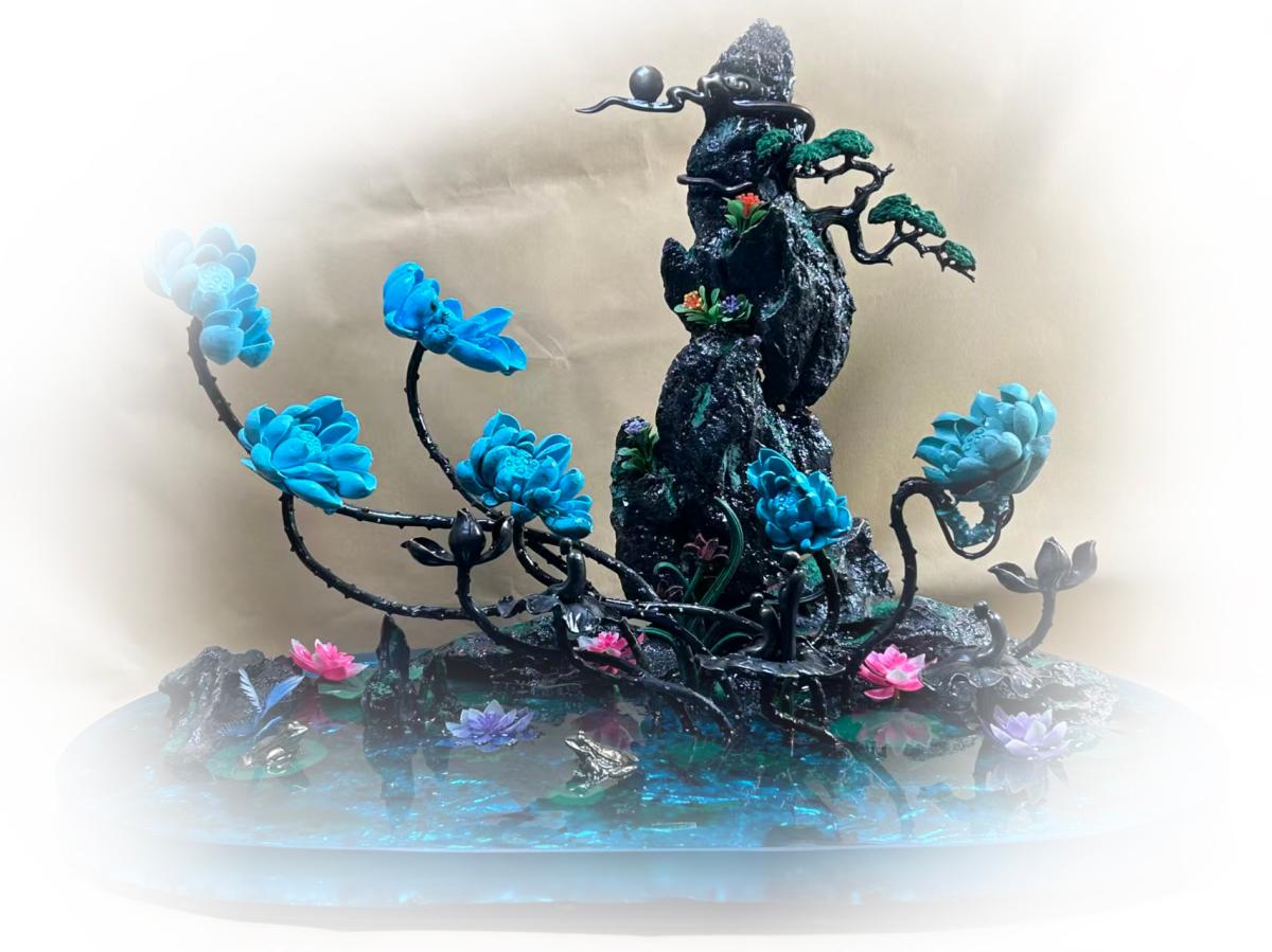 “它的底座和每一朵的荷花的位置,都是經過我們深思熟慮的,也經過無數次驗證,力求整體效果達到完美。”秦黎鵬說。